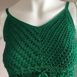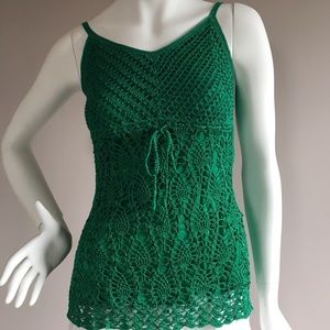 Green crocheted tank top. Excellent condition, worn twice. Beautiful details. No tag with size but it fits like XS.