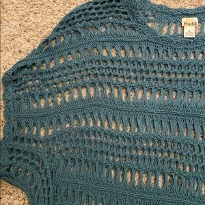 In wonderful!! Worn once, no issues. Looks great wi to a camisole underneath. Darker teal color.