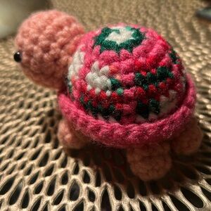 Adorable hand crocheted colorful turtle. 3.5” pink, green and white. Smoke free home.