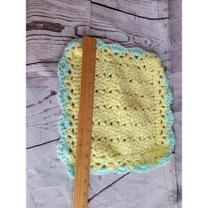 Crocheted Yellow Mint Green Baby Doll Blanket About 11x11in Handmade?