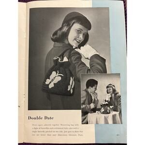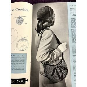 Crocheted pattern book 1940s hat purse gloves bead spread