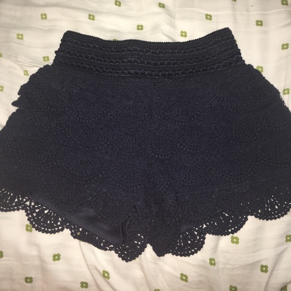 These shorts are navy blue and have almost Crocheted detailing. They are perfect for the beach or just to wear on a normal day