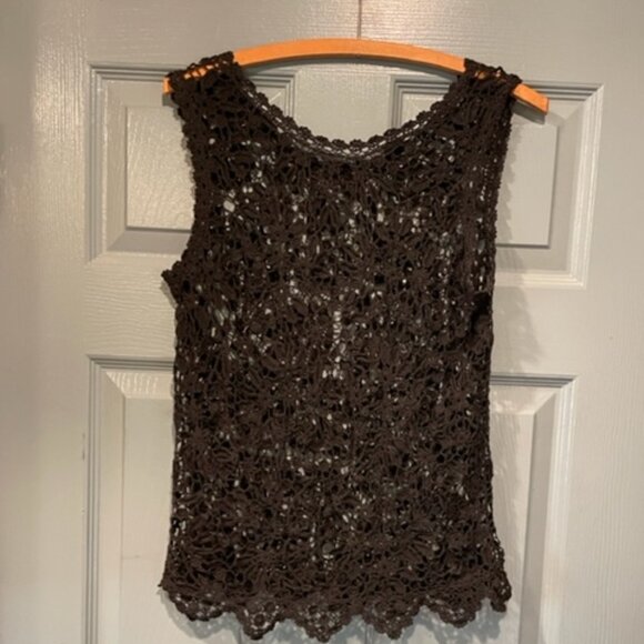 Crocheted/lacy boho black floral sleeveless top, never worn, 35" chest, 23.5" L