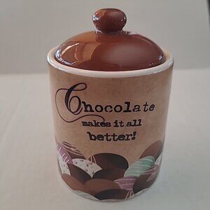 Crock With Lid Small Ceramic Pottery Canister "CHOCOLATE MAKES IT ALL BETTER!" So Cute!