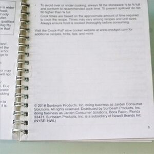 Crockpot Cookbook And Owners Manual SUNBEAM 2016