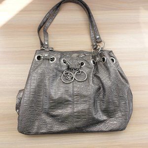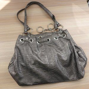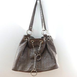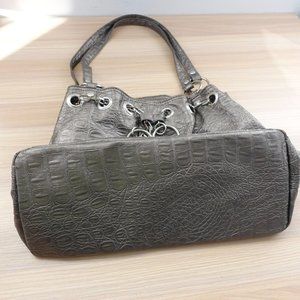 Crocodile Bag Leather Shoulder Gray Bucket Purse Embossed Studded Exotic Faux