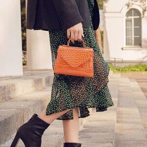 TRENDY AND CHIC CROCODILE EMBOSSED DESIGN: Crocodile embossing and gleaming hardware elevate the sophisticated look of a structured mini bag styled with a top handle and adjustable crossbody strap.This kind of embossing imitates the skins of exotic animal such as alligator and crocodiles, what s more, the texture and feel of this leather is realistic to that of real alligator or crocodile hides.