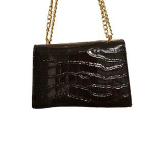 Faux leather with croc print detail. Front flap closure with chunky gold chain detail and snap closure