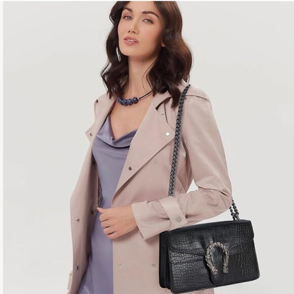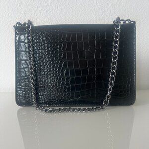 Crocodile Faux Leather Black Crossbody Shoulder Bag