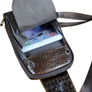 🧿Durable & Vintage Crocodile Leather Sling Bag: This sling bag is made of crocodile genuine leather, top-quality zippers, adjustable strap, fabric lining, leather and excellent workmanship, vintage and fashionable type design, which shows your outstanding temperament when travel outdoor camping.