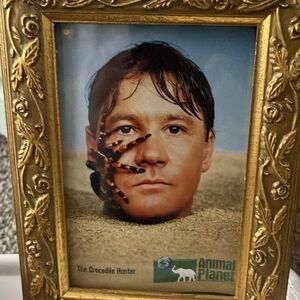 Comes with/ real crocodile head purchased in Key West. Teeth are sharp. RIP to the original Crocodile Hunter. I loved this guy! Frame included.