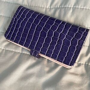 Stylish checkbook wallet case with a crocodile pattern. Elegant and functional design. Slot for card, minor flaws as seen in pictures. Durable and in good condition.