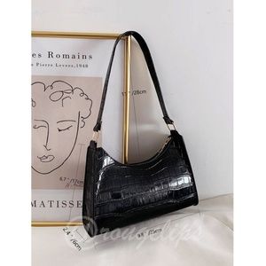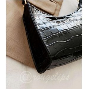 Crocodile Pattern PU Leather Black Baguette Handbag