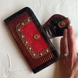 Crocodile Wear Vintage Crocodile Embossed Leather Wallet with Studs