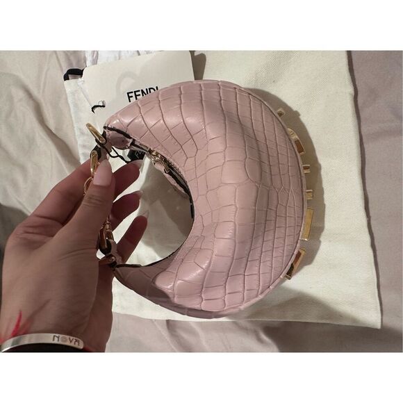 Crocodile leather fendi nano mini bag pink and gold new with tags fendigraphy