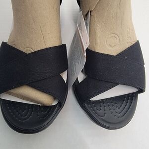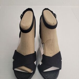 Crocs 11 Leigh ll Ankle Strap Wedge Sandal Black Lightweight New