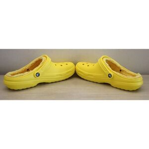 Crocs 203591-7A9 Unisex Sz Men's 11 Women's 13 Lemon Yellow Classic Lined Clogs