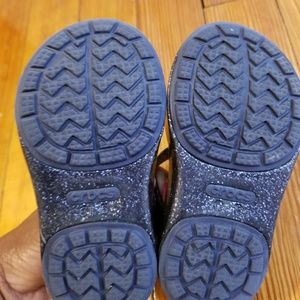 Navy blue jelly sandle with pink butterfly on top, superccute