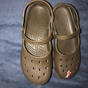 These chocolate brown crocs have adjustable straps and a cute little piglet to add on! *Never worn...just collecting dust in my closet 😳*