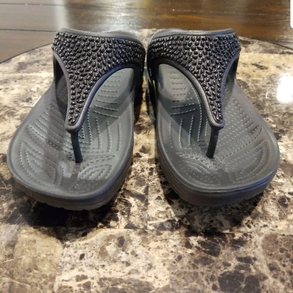 Womens cross sz 10. Great condition I wore once. I have so many in different colors so I never wear the black pair. They have the look of small black stones on them. If u wear a 9 1/2 u can wear a sz 10 according to Crocs szing.