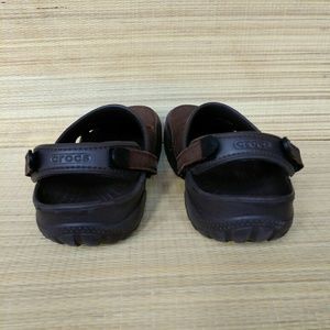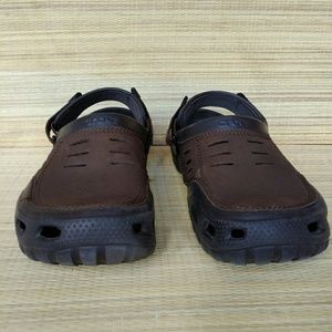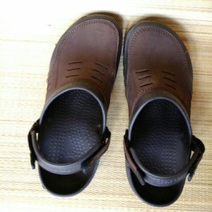 Very good pair of Crocs, not used much. Two tone brown make these look good. Little nubs in the insole give massaging sensation.