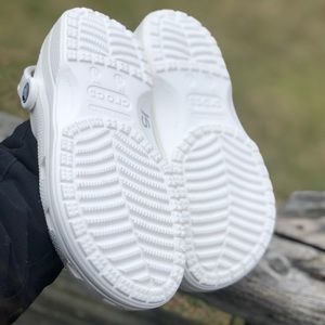 Brand new white classic clog Crocs. Size: Women’s 8 Mens 6.