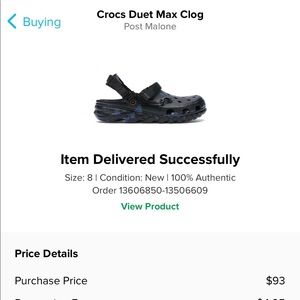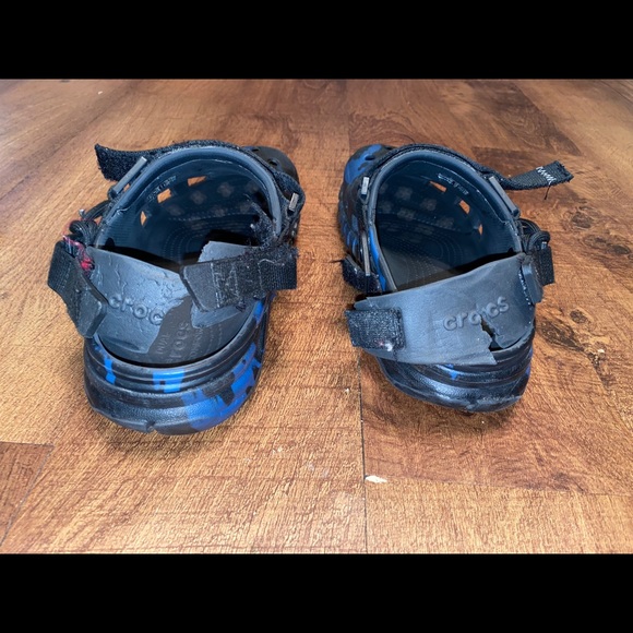 Post Malone crocs 100% authentic I’ve only worn for 2 months basically brand new but my new born puppy started teething and chewed up the back straps flaw is shown in picture price is negotiable comes with OG BAG
