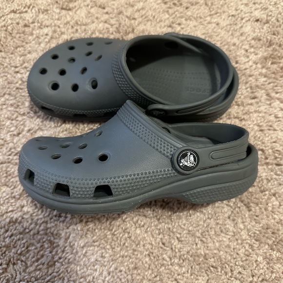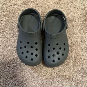 Little kids size 13 Crocs. Dark grey. Good condition.