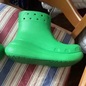 Croc boots size w8, m6, worn once … had to have them and I won’t wear them again .. it’s what I do 😁 John Deere green in color