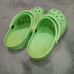 size 8 women's, size 6 men. mint colored crocs.