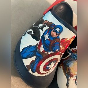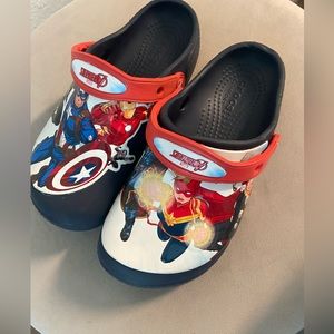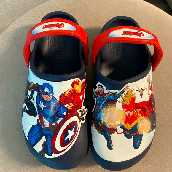 Avengers kids crocs. Very fare condition. Not all hero’s wear capes Let me be your fashion! You won’t be disappointed with your purchase!