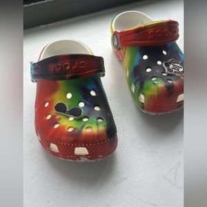 Rainbow colored crocs
