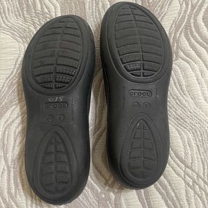 Size 8 Women, black Crocs. Perfect for tired feet at the office , church and pretty much anywhere! Wore a few times, a few scuffs please see pictures. Easy to wipe clean!