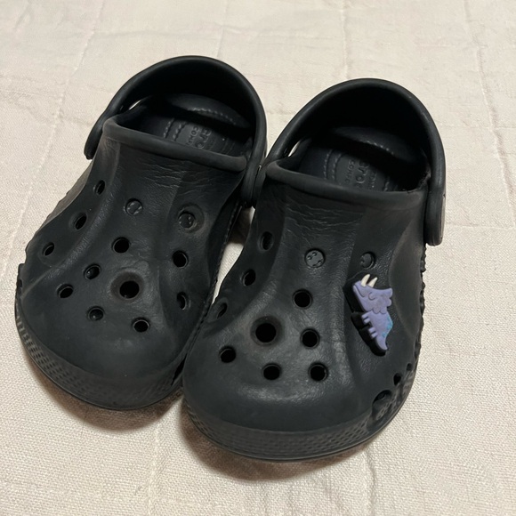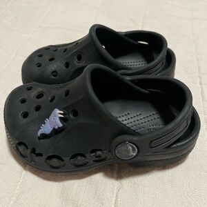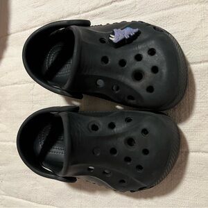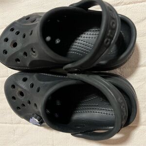 Toddler six 6 black crocs. Used but Good condition.