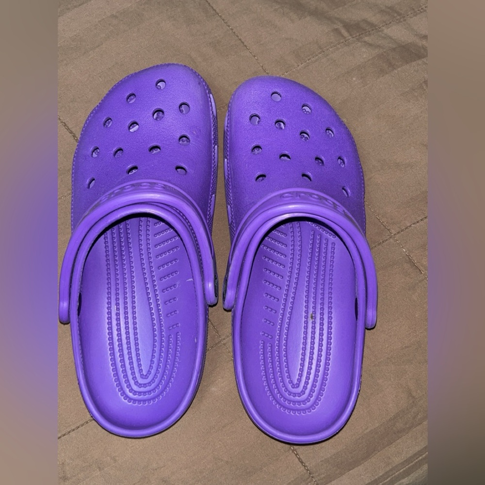 Crocs women’s size 8 and men’s size 6. Only worn a few times and in great shape. Color purple