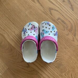 Adorable butterfly design crocs. Daughter wore as her indoor shoes only. Good condition!
