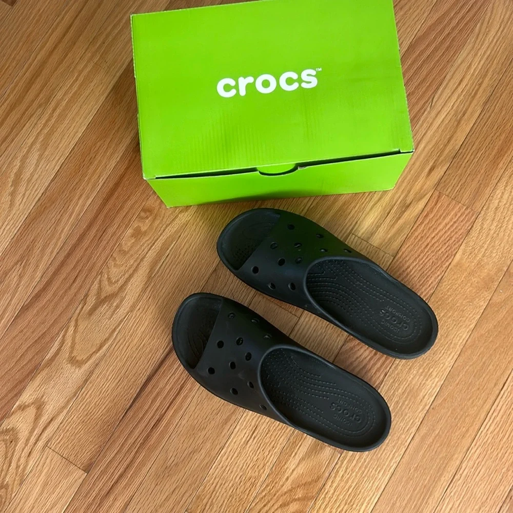 Black slip on crocs Worn once In original box Smoke free and pet free home