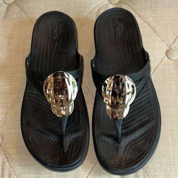 Crocs Sanrah Liquid Metallic Wedge Flip Sandal