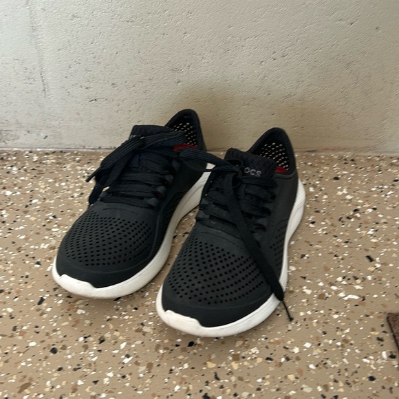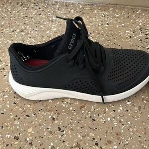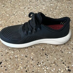 Black size 6 women’s tennis shoes/crocs