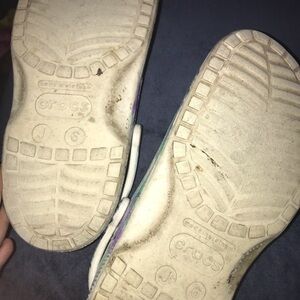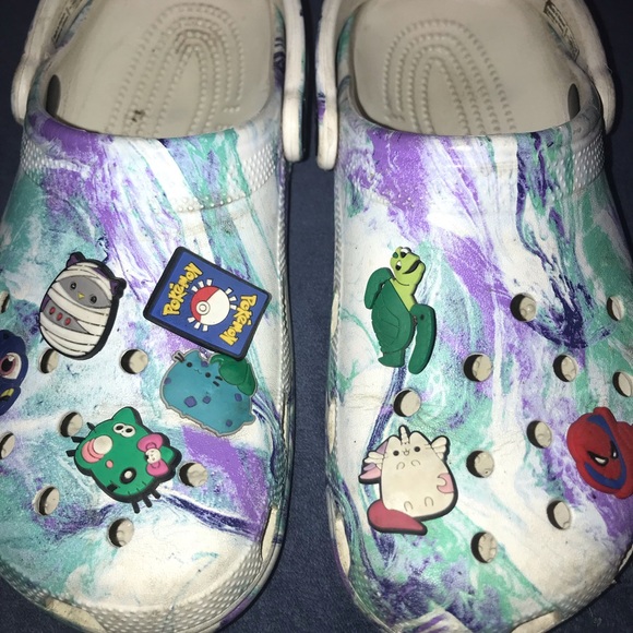 Marble crocs youth 6 or women size 7.5 worn but lots of life left charms included