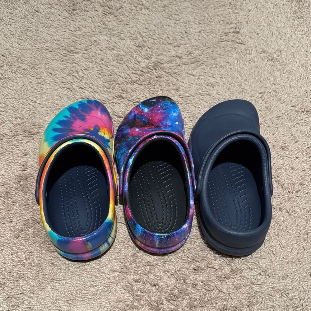 Dark blue are more worn and added more so to get rid of them. Purple Astro colored ones are like new, only worn a couple of times.