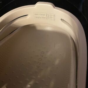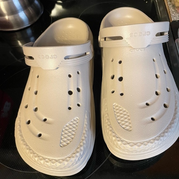 NWOT or box. Crocs in an off white color. Mens size 10, woman's size 12. Never worn.
