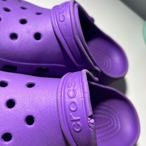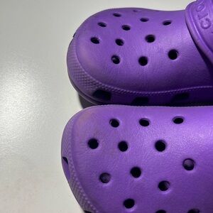 Purple Crocs in size 4w and 2m. Flaws are pictured above.