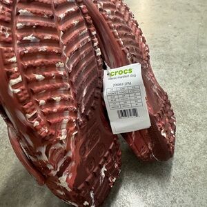 Brand New Crocs - never worn. Classic Marble Clogs, unique red with white swirls.