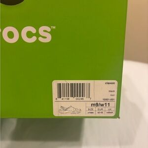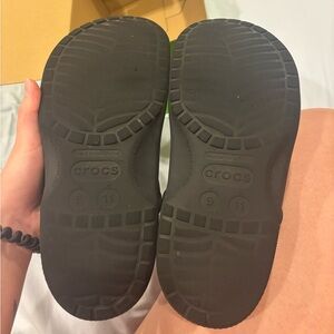 Black Crocs classic clogs tread on bottom is worn down but they’re in good condition.