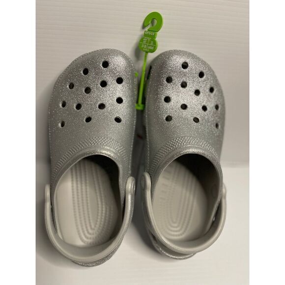 Cute Silver Glitter Crocs/ New With Tags / Size m5 w7/ Retail $49