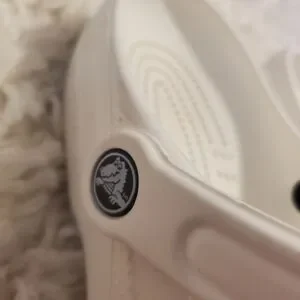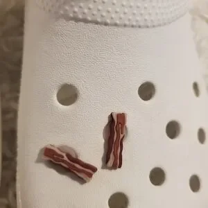 white crocs w breakfast jibbitz that I purchased on etsy. the egg was 15 plus shipping. very cute rubber like egg. w8