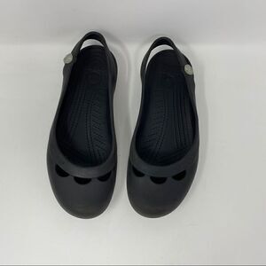 Crocs 8 Black Jayna Ballet Slip On Slip On with Straps Shoes Clogs