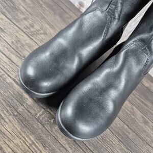 Crocs A-Leigh Black Leather Tall Equestrian Riding Wedge Boot Women's Sz 7 (VGC)