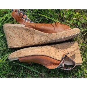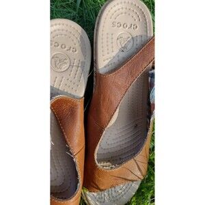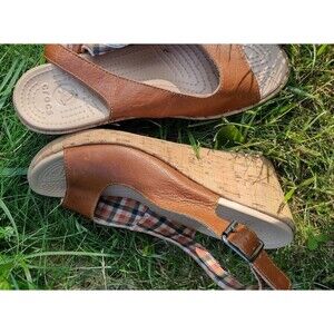 Crocs A-Leigh Brown Leather Slingback Cork Wedge Sandal